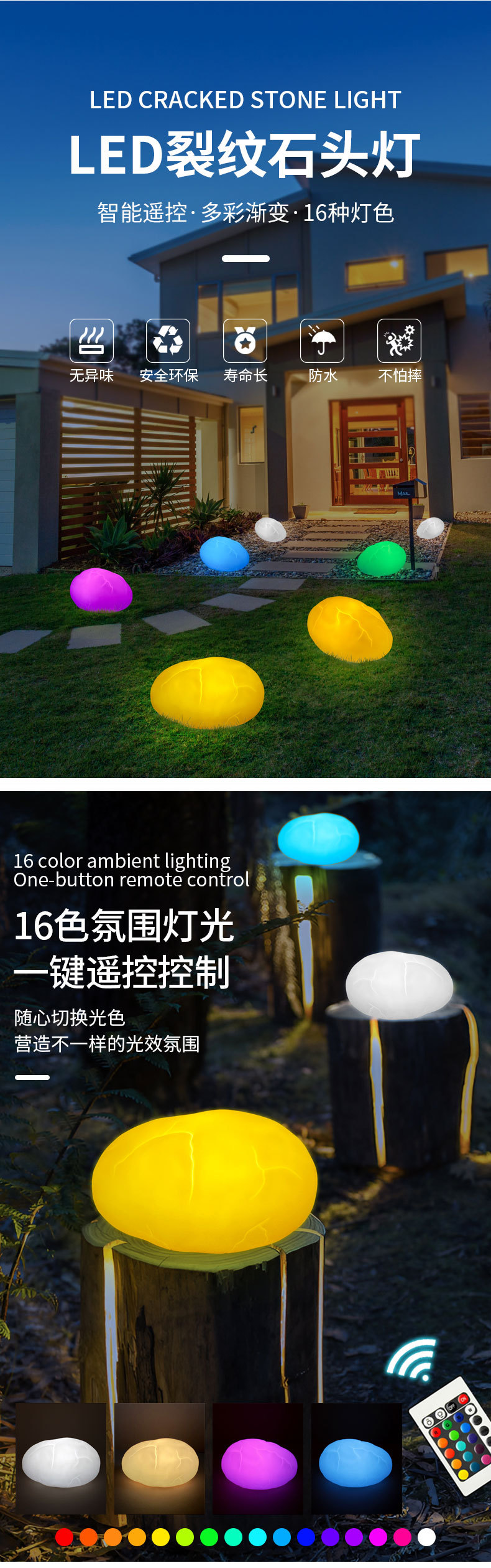 裂紋石頭草坪燈景觀庭院戶外防水創意庭院燈七彩草坪氛圍裝飾燈