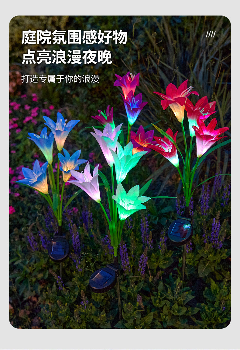太陽能百合花地插燈戶外亮化氛圍彩燈庭院陽台花園地插草坪裝飾燈