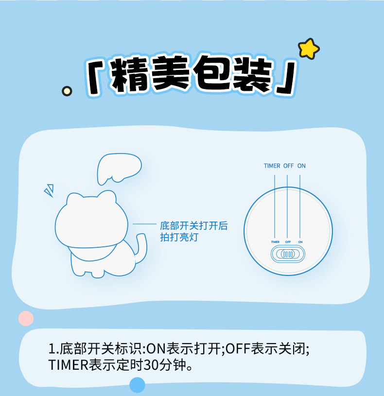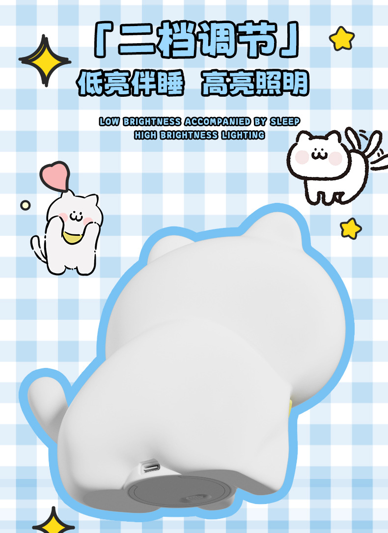 快樂小貓小夜燈網紅爆款矽膠拍拍燈臥室床頭擺件氛圍燈高級感夜燈
