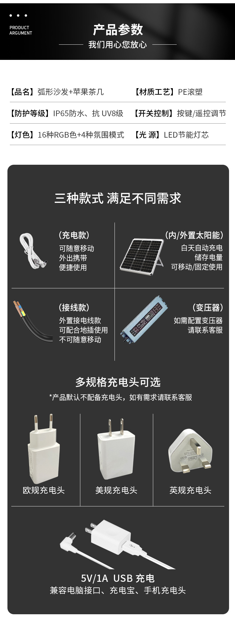 工作方式 | 充電款、接線款、太陽能充電兩用款 |