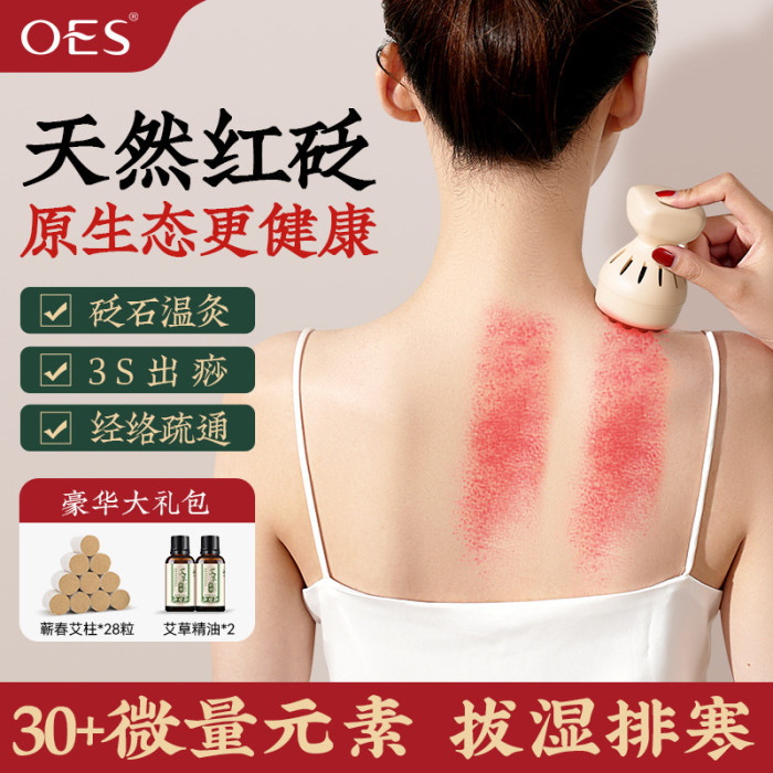 (天然原石款)紅砭石刮痧+明火艾灸+微量元素肉粉色