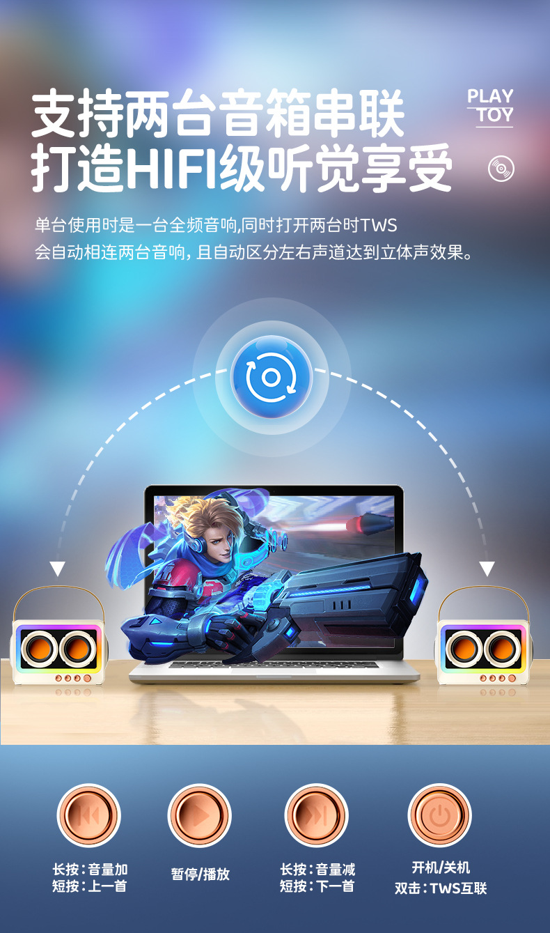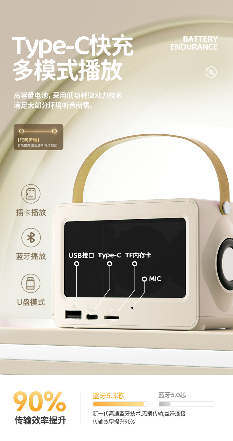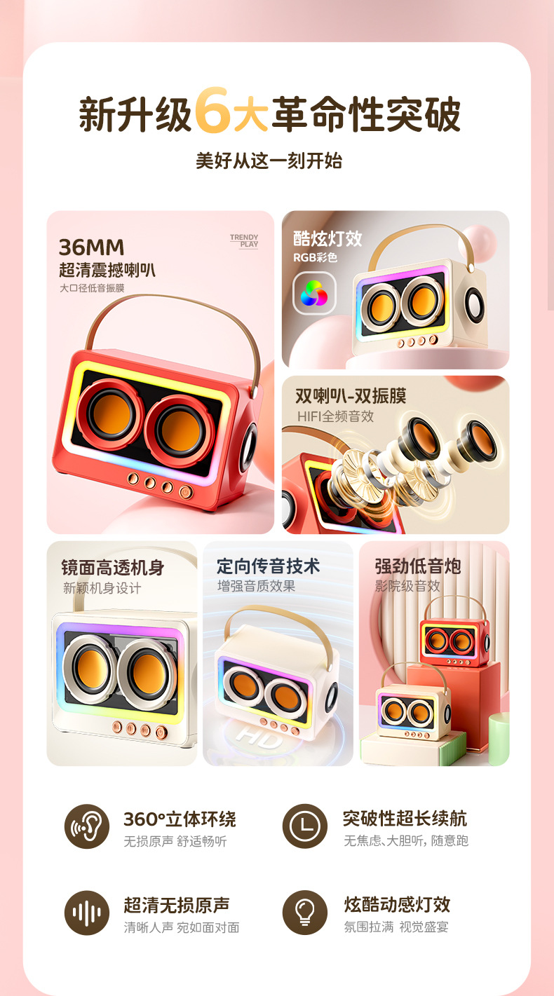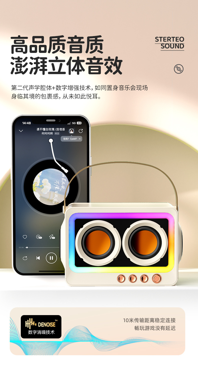 2025新款藍牙音箱家用桌面戶外無線可攜式音響低音砲藍牙5.3