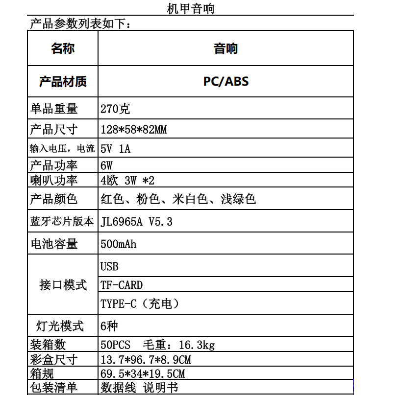 款式及尺寸: