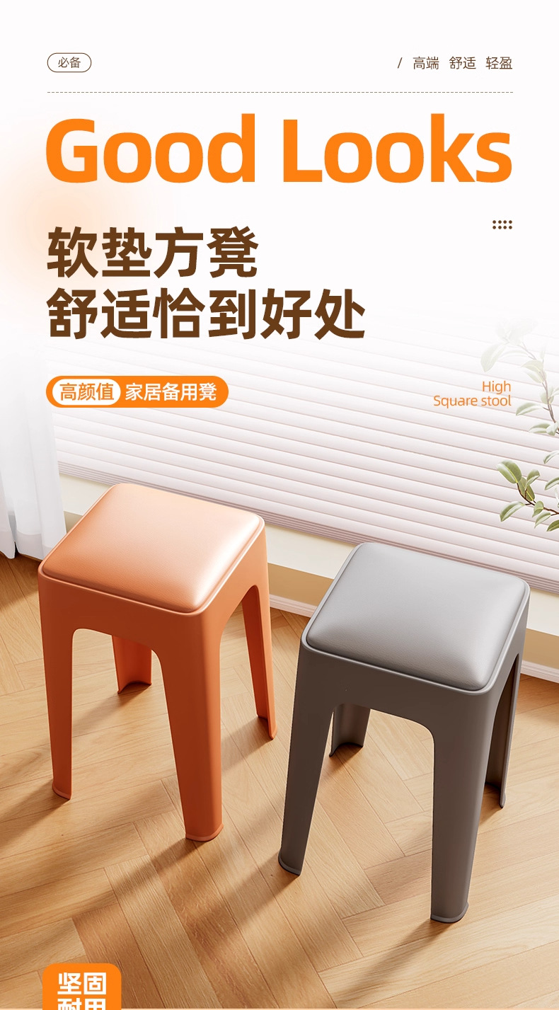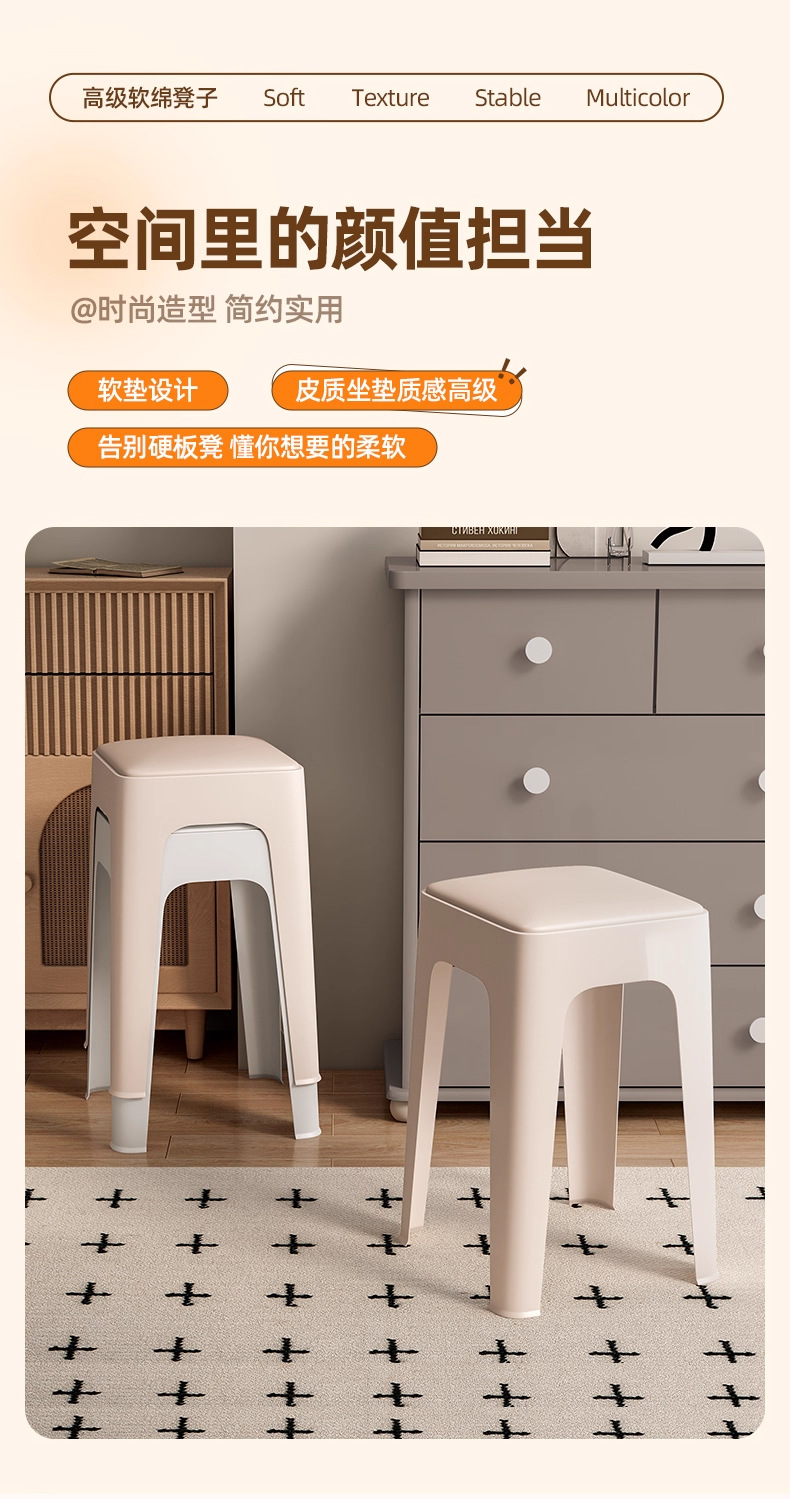 塑膠凳子家用加厚可曡放北歐創意A軟包板凳現代簡約客廳餐桌高椅