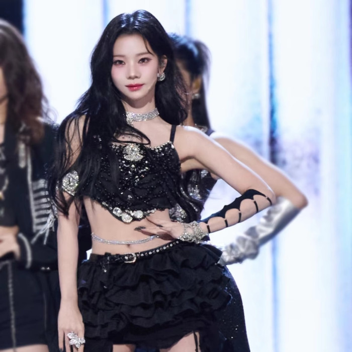 張紫甯同款性感黑色亮片打歌服套裝韓國女團同款夜店短裙舞台服