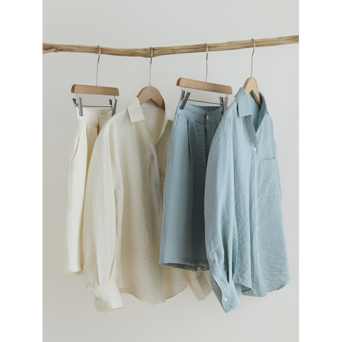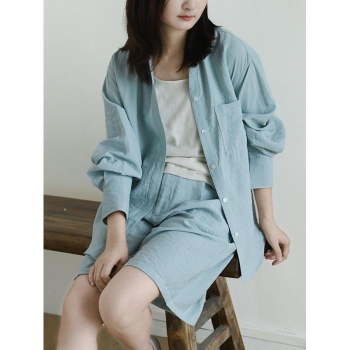 塵染清冷松弛感套裝女2025夏季新款Polo領桑蠶絲襯衫乾絲寬松褲子