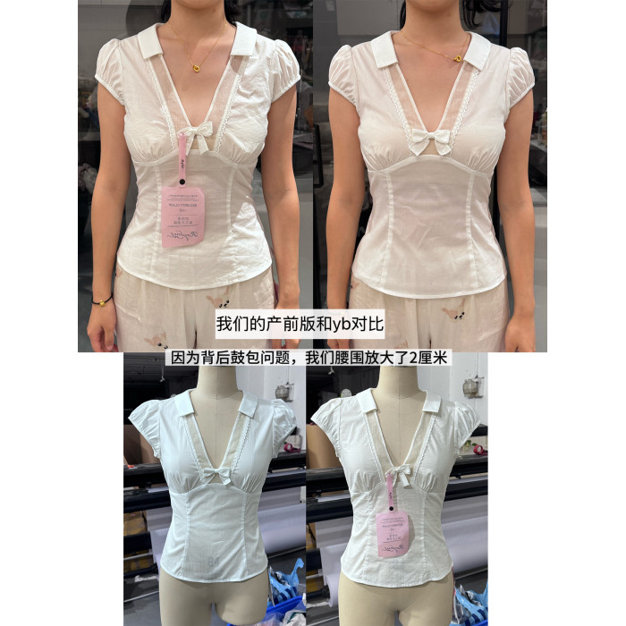 龍心 休息日的offer 真絲v領蝴蝶結修身襯衫&麻花短裙