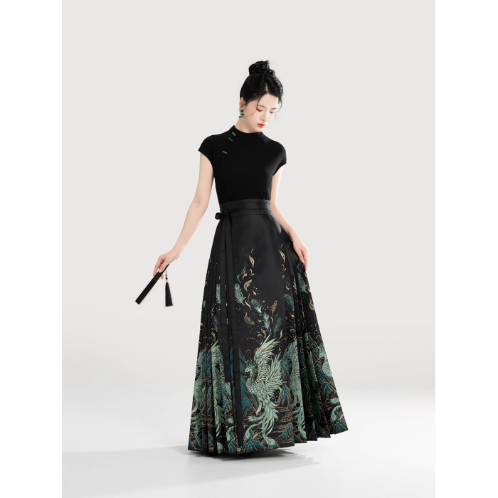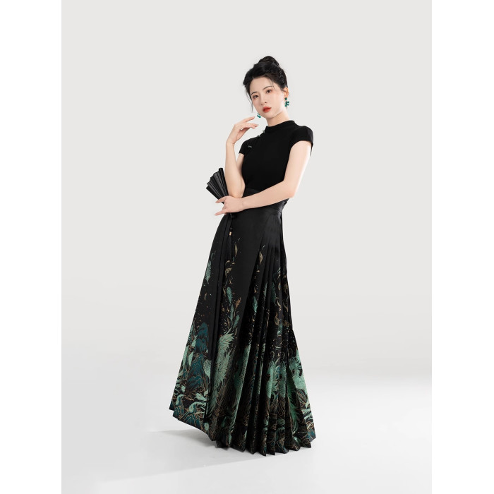 兩件套(羽裳黑色半高領+青羽馬面裙)
