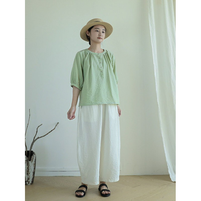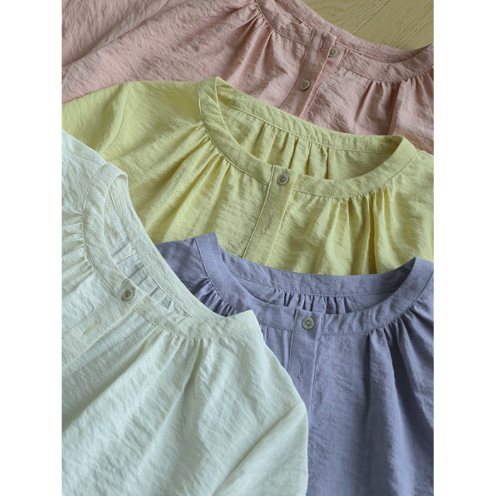 塵染減齡圓領襯衫女2025夏季新款桑蠶絲薄款小衫真絲乾絲寬松上衣