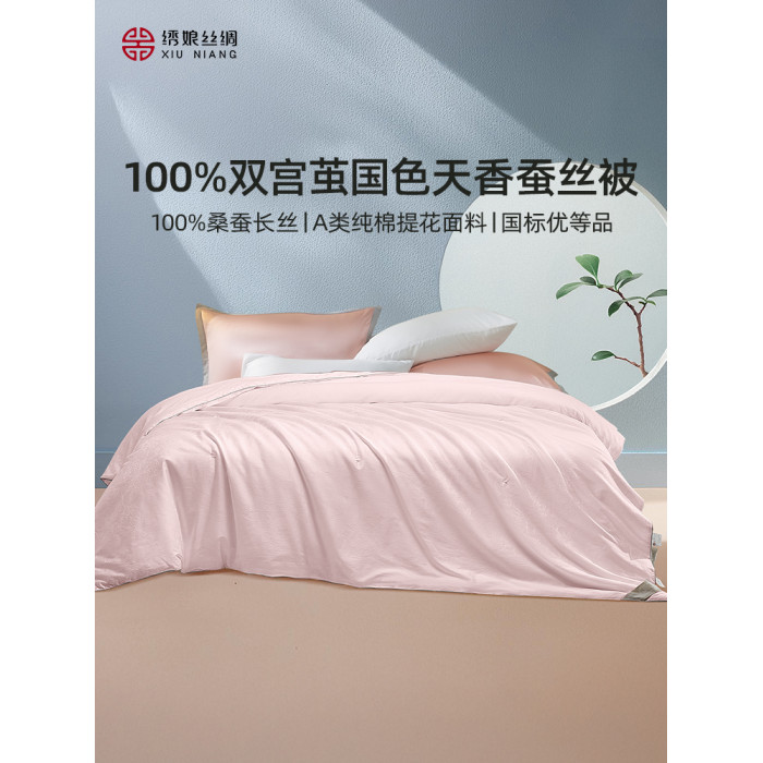 綉娘絲綢蠶絲被100%桑蠶絲被子被芯春夏被子長絲棉雙人被褥四季被