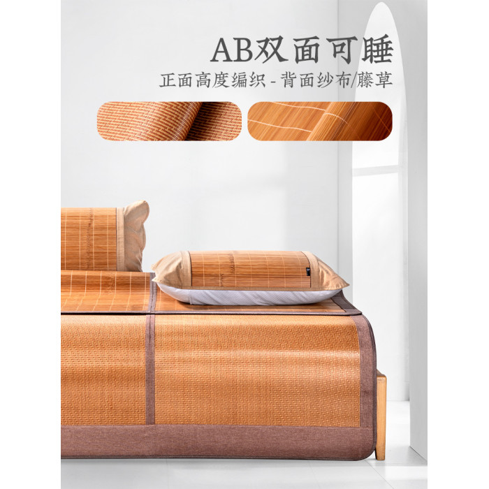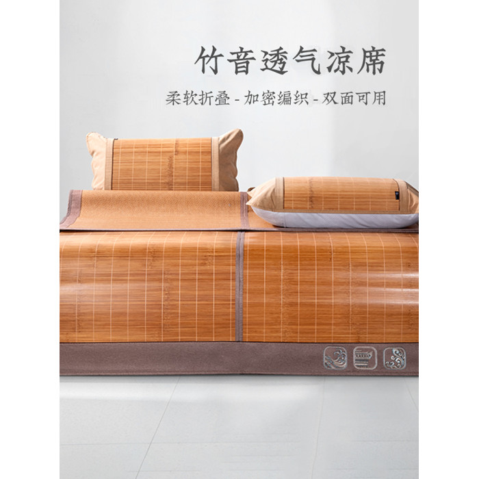 遠夢竹音禦絲透氣蓆夏涼蓆子細竹蓆碳化雙面可折曡單人雙人1.51.8