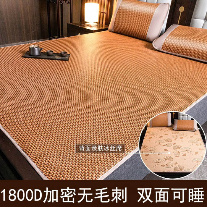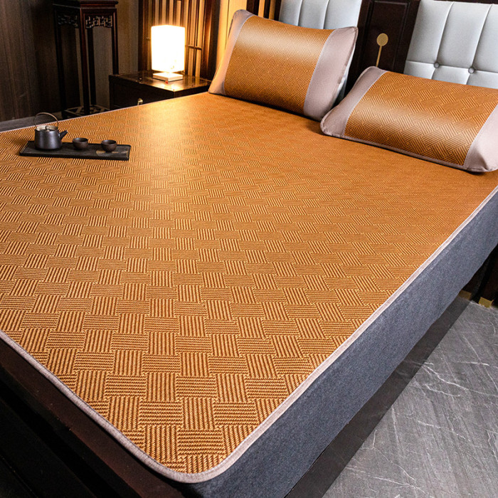 艾草雙面冰藤蓆-金色+180*200cm涼蓆三件套