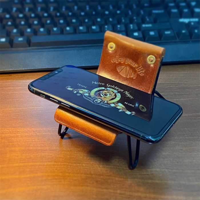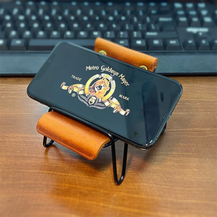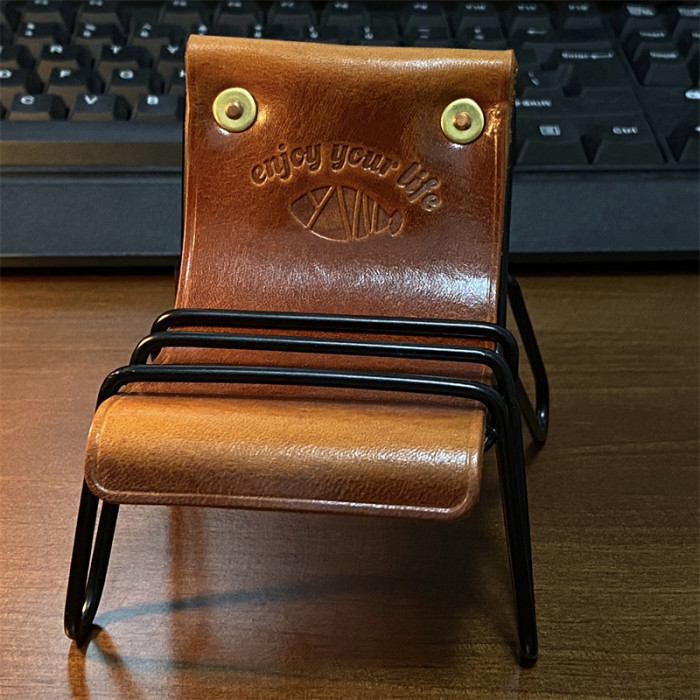 郵物手工個性復古牛皮手機支架桌面真皮趣味擺件手機座椅