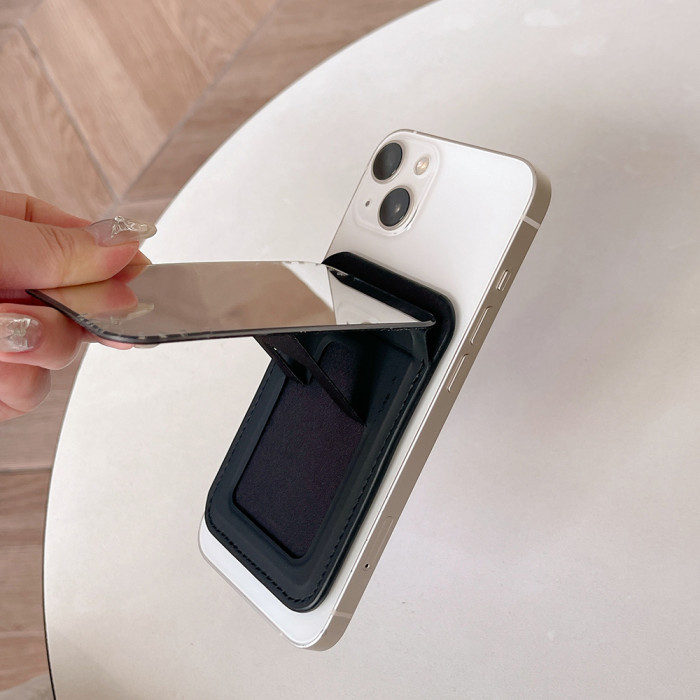 一拍即合卡包Magsafe磁吸手機支架啪嗒純鏡面女生鏡子折曡桌面