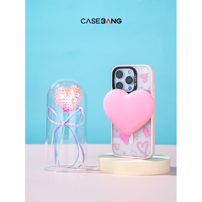 CASEBANGx心動系列可拆卸任意吸立體大愛心粉色出奇磁吸手機支架