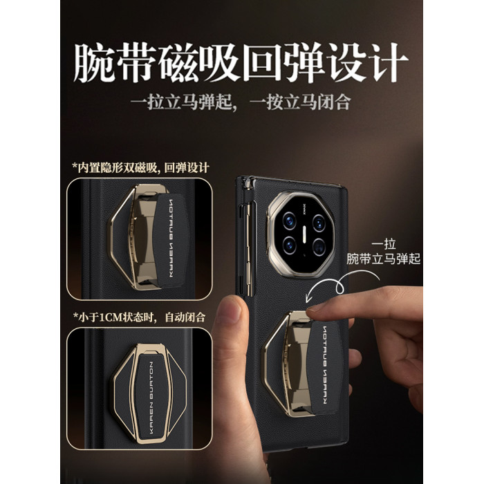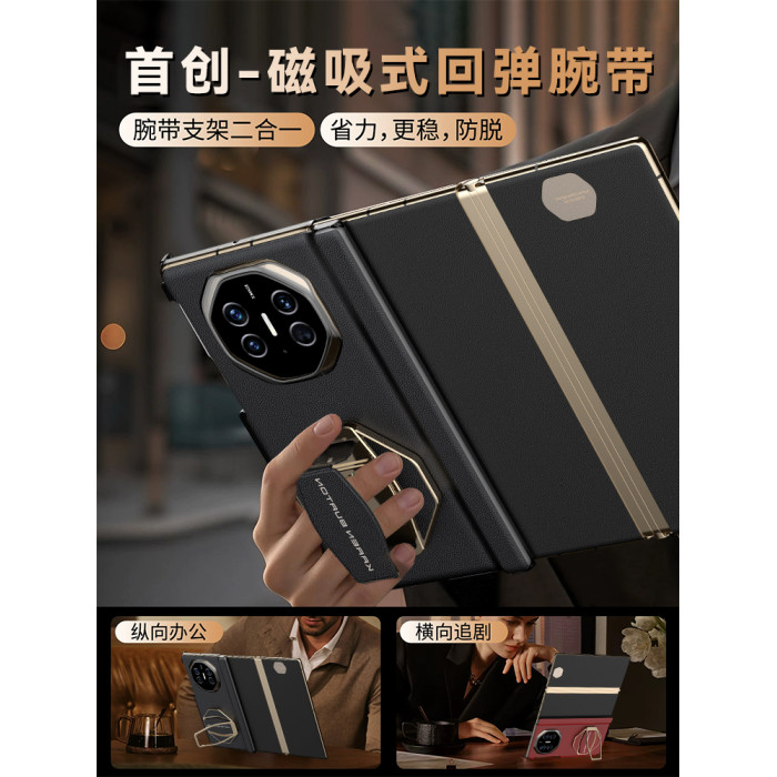 咪噠手機支架背貼殼指環真皮鋁合金支架二合一手腕帶適用蘋果華爲三折曡桌面支撐架可折曡多功能可攜式吸附配件
