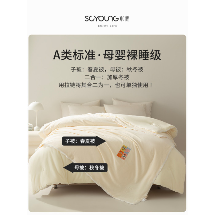 全棉A類80%大豆蛋白纖維二合一子母被子冬被加厚保暖春秋被芯雙人