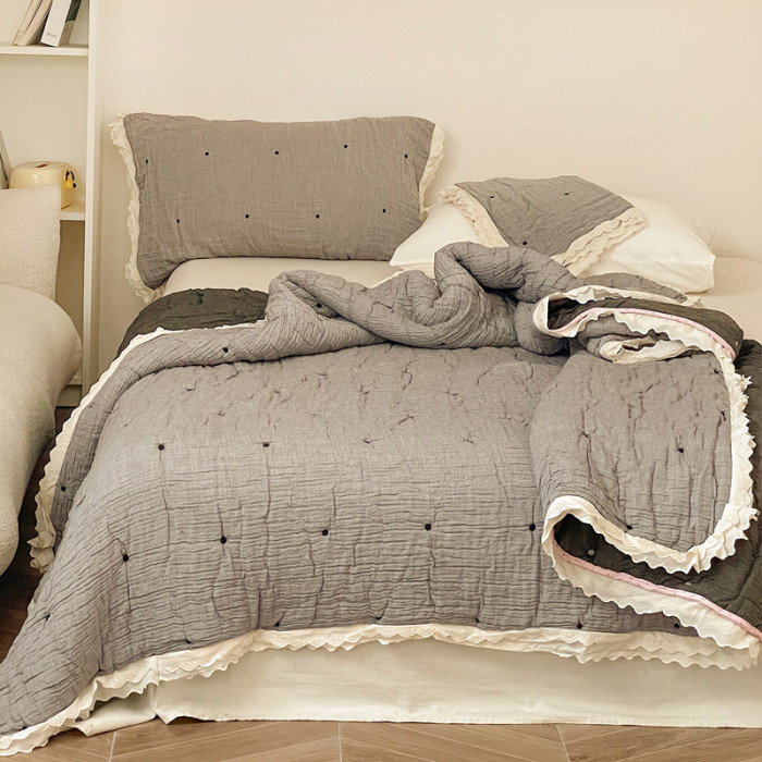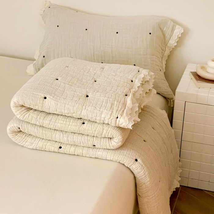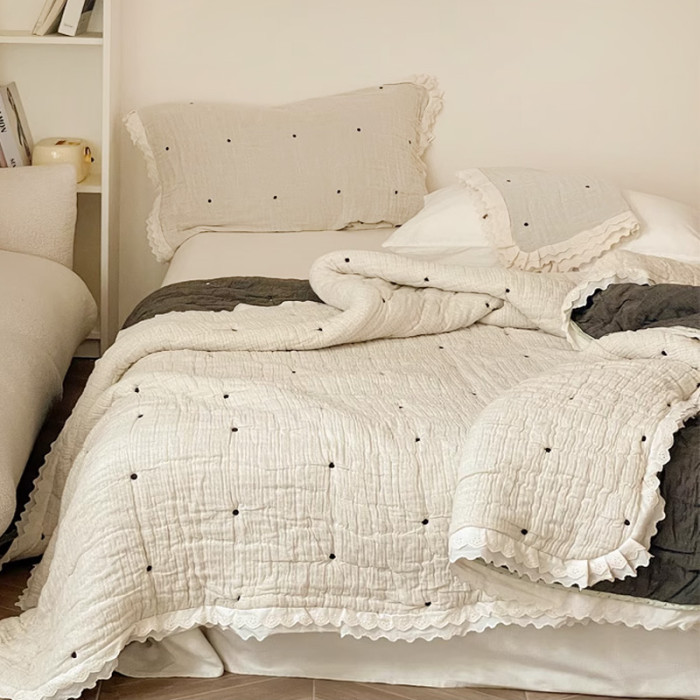 A類韓國十層棉紗泡芙被雙面純棉可機洗春秋被一體被四季通用被子
