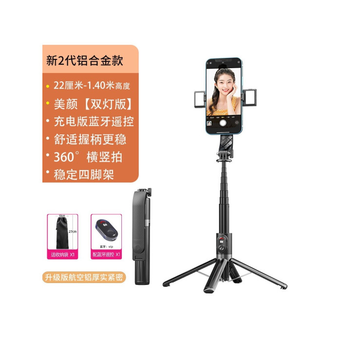 黑色加高【新1代1.4米鋁合金杆+抖音遙控】雙美顔燈-四腳架-帶遙控-手機通用