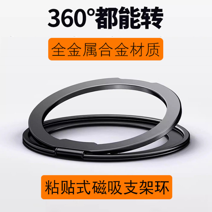 黑色【二代全金屬粘貼式】360°旋轉支架環