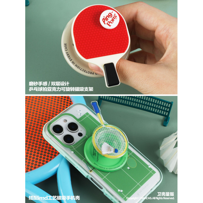 乒乓羽毛球磁吸手機支架個性潮原創趣味旋轉磁吸手機支架小衆新款