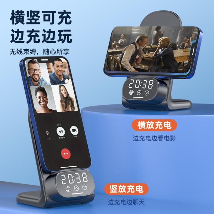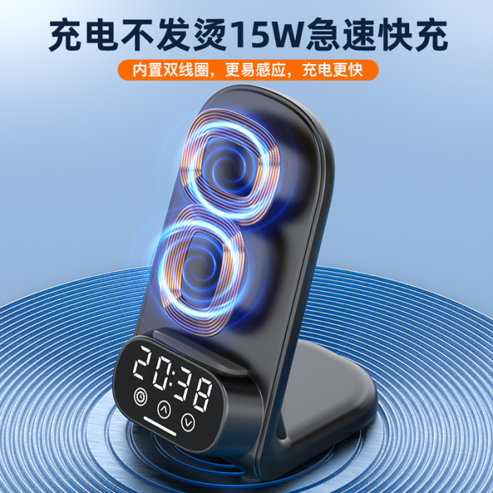 黑色+充電頭[新款三合一充電支架數碼時鍾顯示]