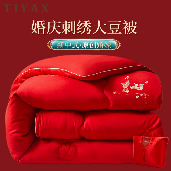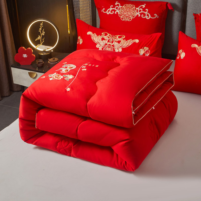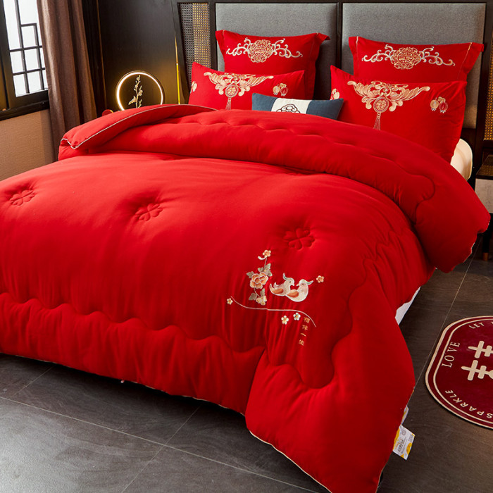 高級A類大豆被芯被子紅色綉花春秋棉被新婚雙人喜被結婚慶陪嫁被