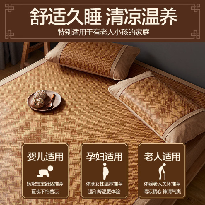 MUMI藤蓆床笠款雙面冰絲涼蓆冬夏兩用1.8m可折曡純藤全包蓆子草蓆