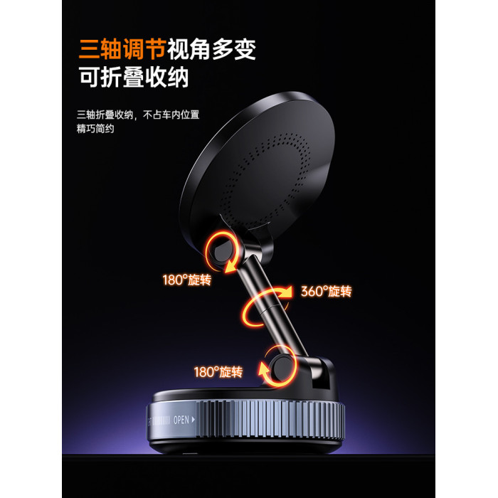 充電款【黑色】MagSafe磁吸|三軸調節|360度旋轉真空吸附