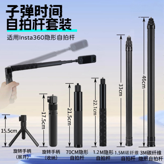 適用影石insta360X5/4/3配件自拍桿子彈時間旋轉手柄三腳架手持延長桿隱形自拍桿支架三角架全景運動相機配件