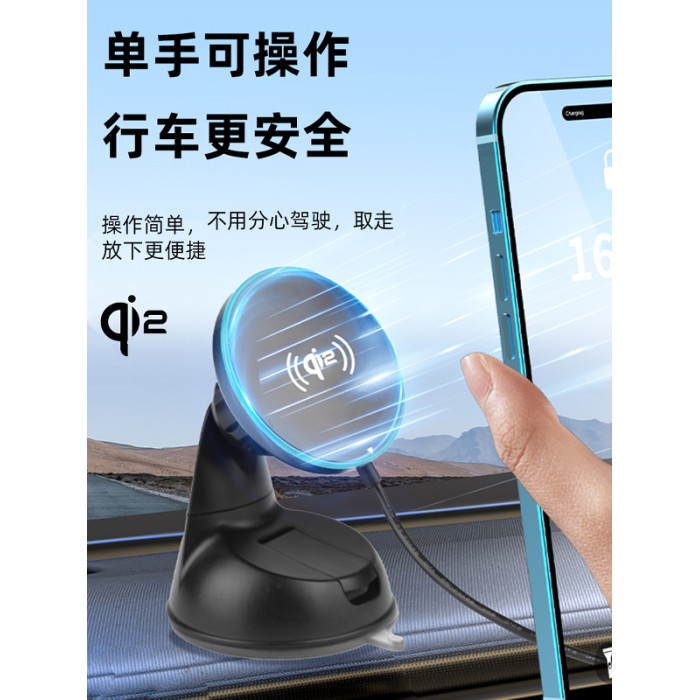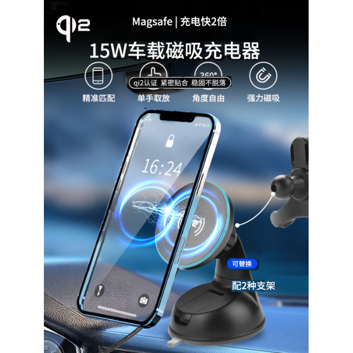 QI2真15W車載磁吸充電器配雙支架+qc30車充頭