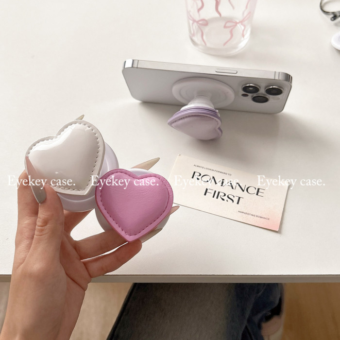 磁吸支架 紫色皮質繙蓋愛心鏡子