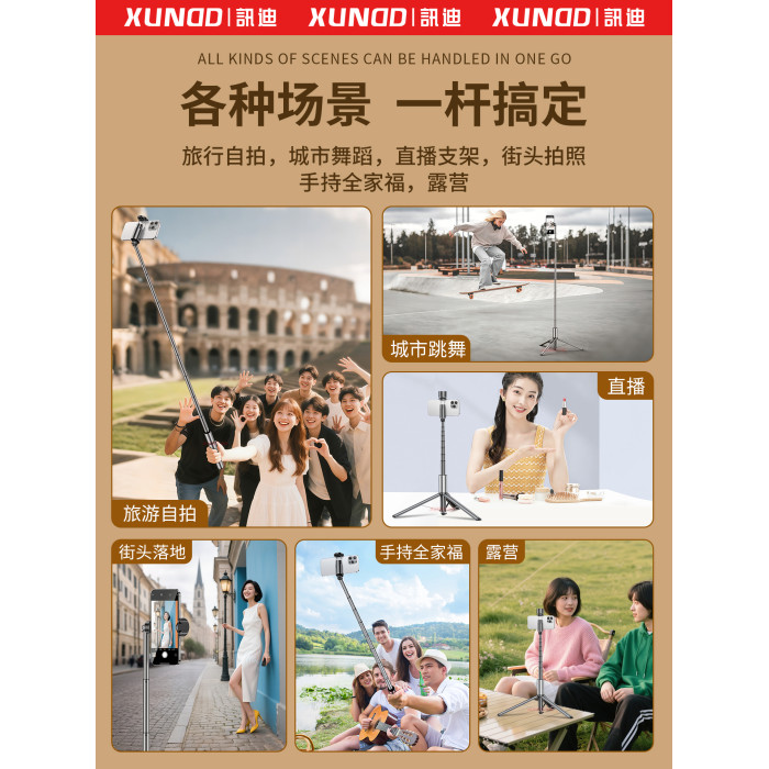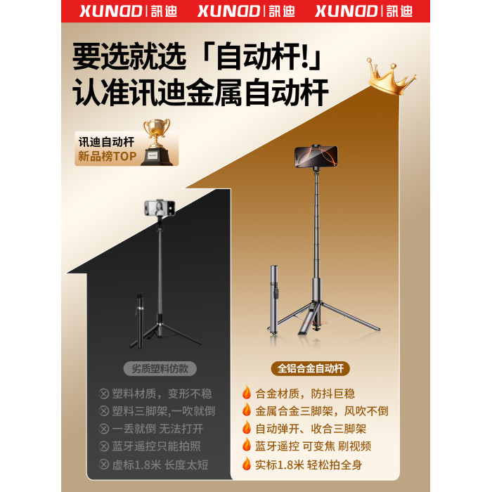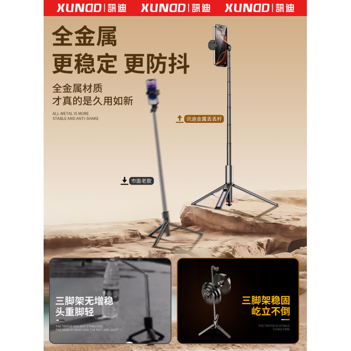 全金屬自動桿】訊迪2025新款手機自拍桿三腳架一體旅遊可攜式手持720度旋轉拍照神器vlog演唱會攝支架丟丟桿