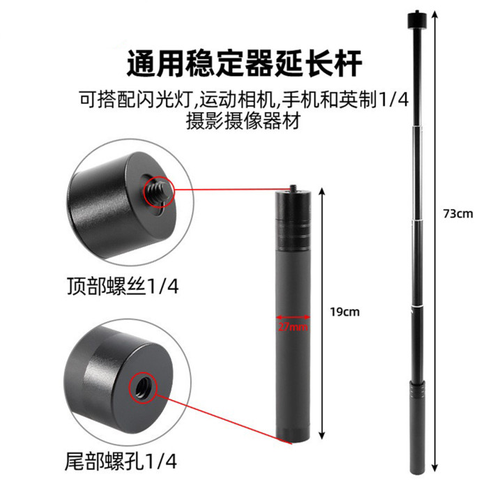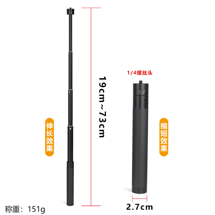 手機自拍桿小巧可攜式微單運動相機拍照攝影通用延長桿手持伸縮桿鋁合金小雲台360度旋轉角度調節1/4接頭gopro