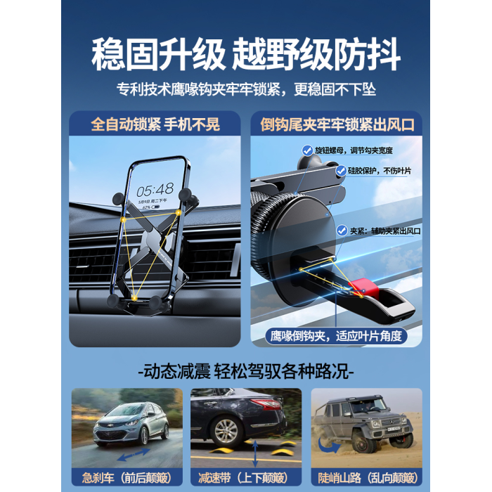 銀色-旗艦出風口款【重力感應★穩固無異響】狂抖不掉