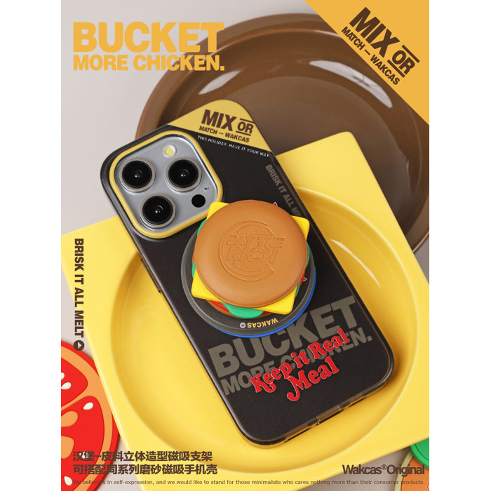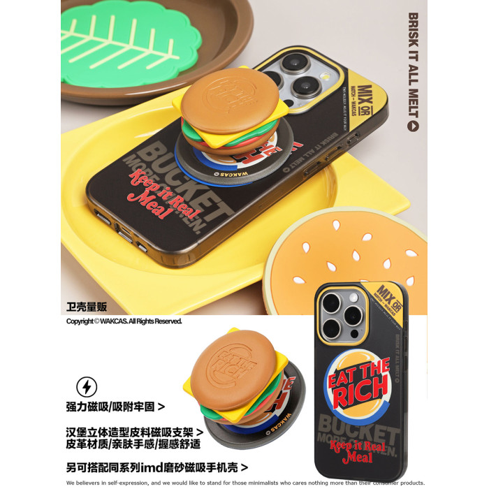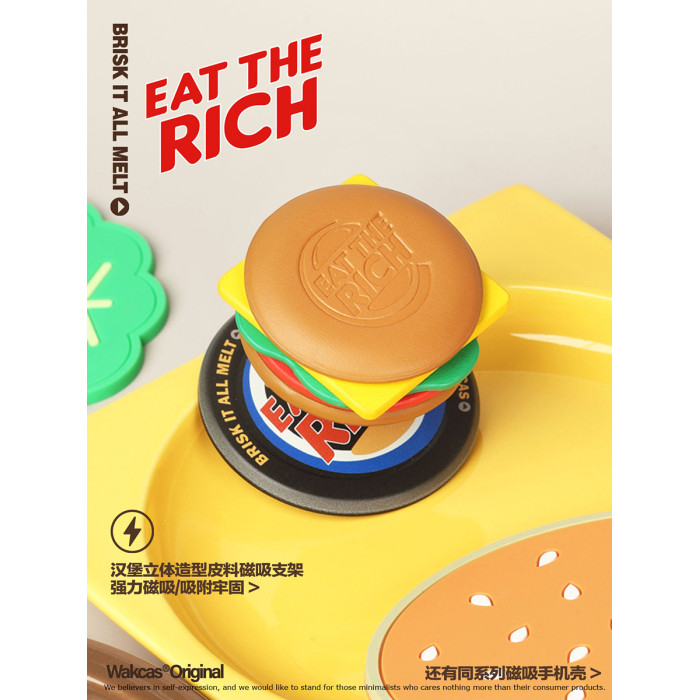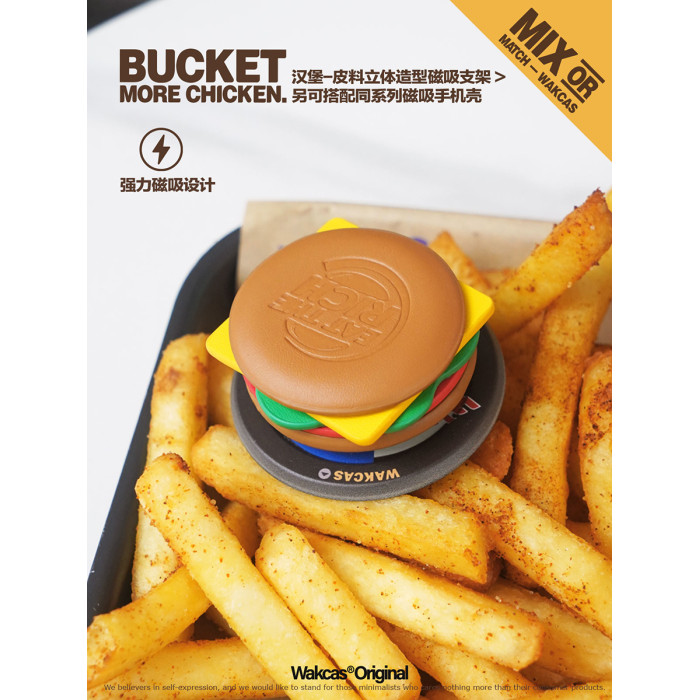 漢堡包手機磁吸支架皮質個性潮流原創設計新款伸縮手機支架磁吸
