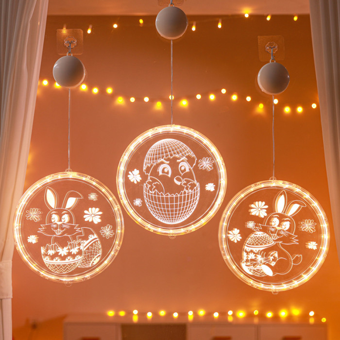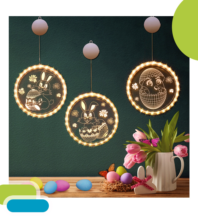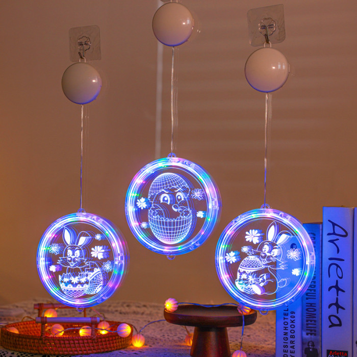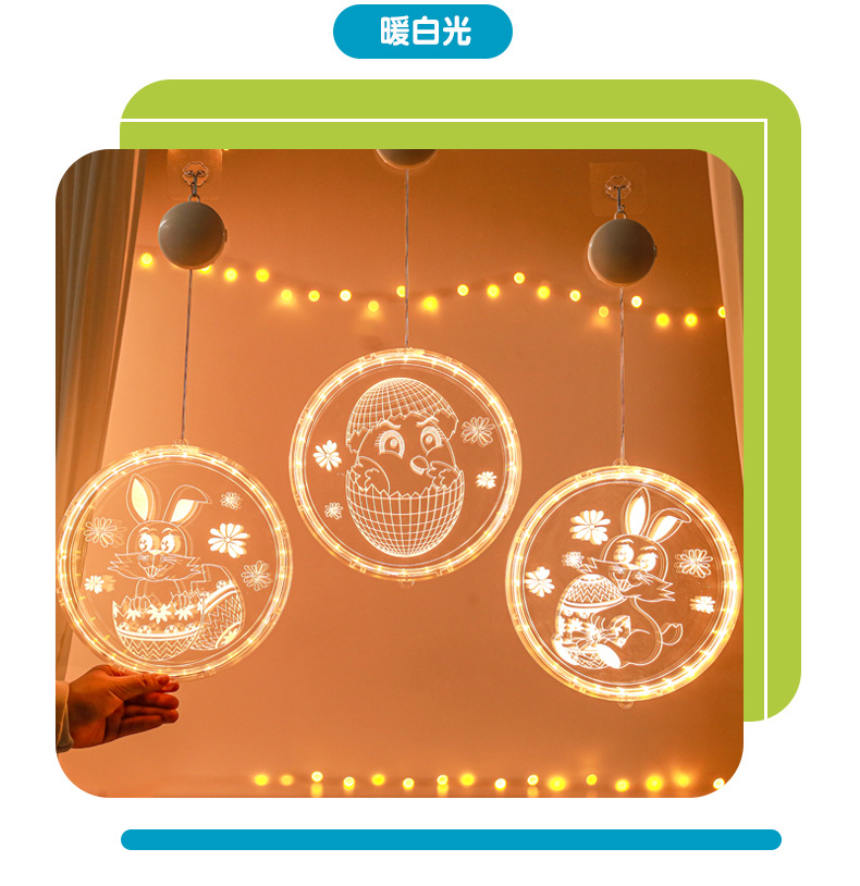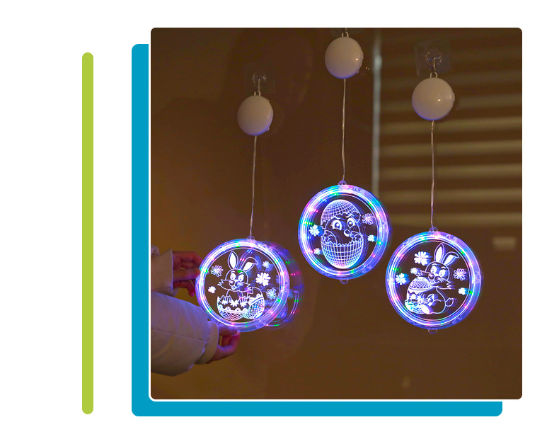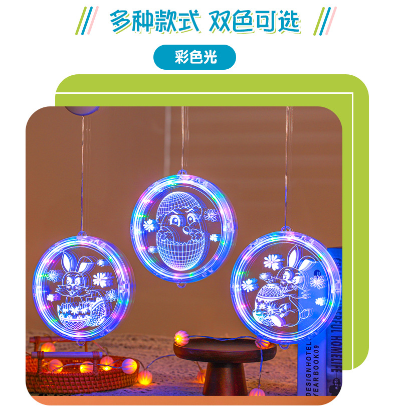 發光兔子彩蛋吸盤LED彩燈掛件復活節室內櫥窗氛圍裝飾布置掛飾