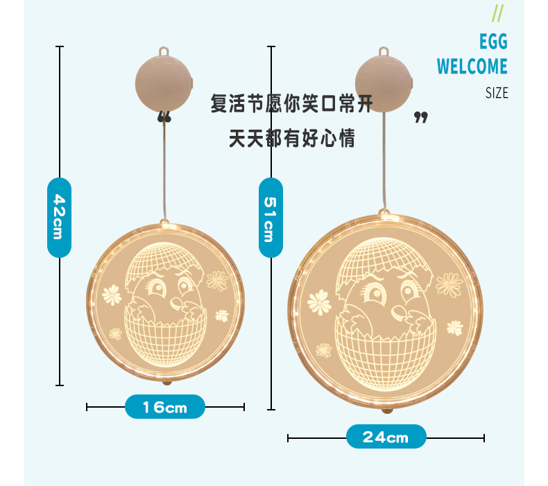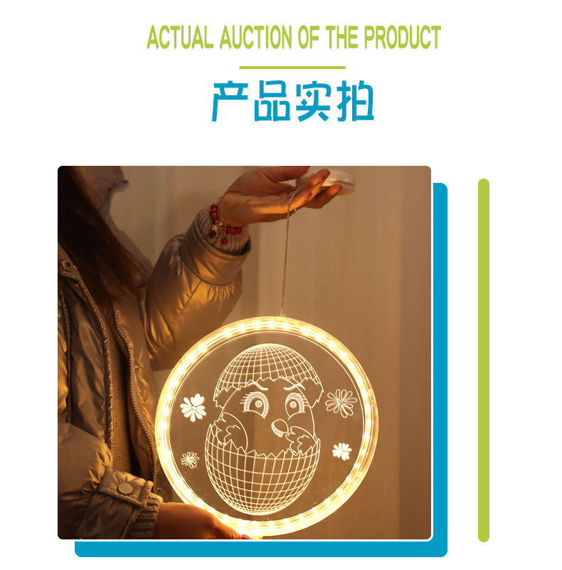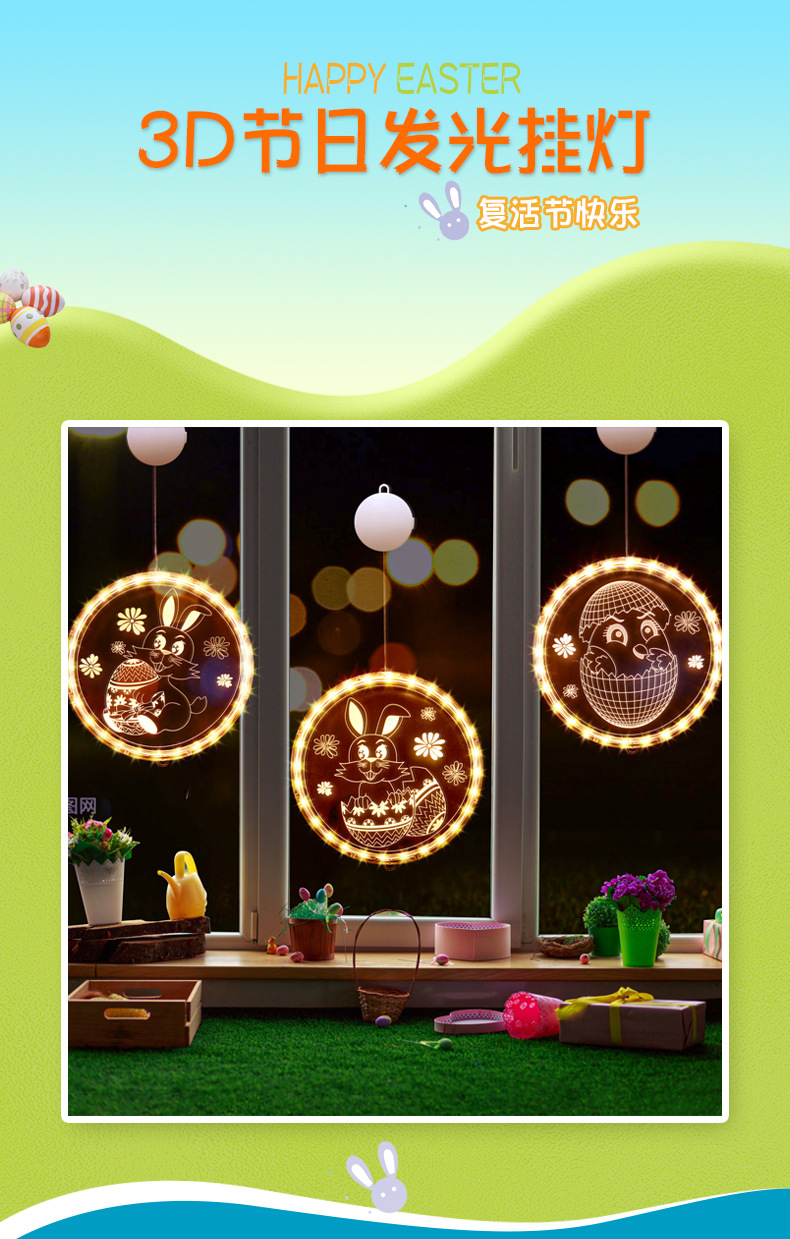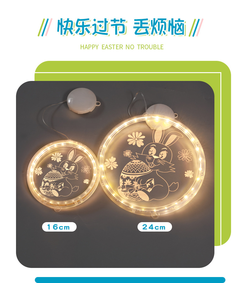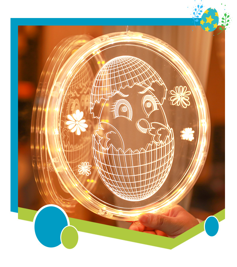 發光兔子彩蛋吸盤LED彩燈掛件復活節室內櫥窗氛圍裝飾布置掛飾