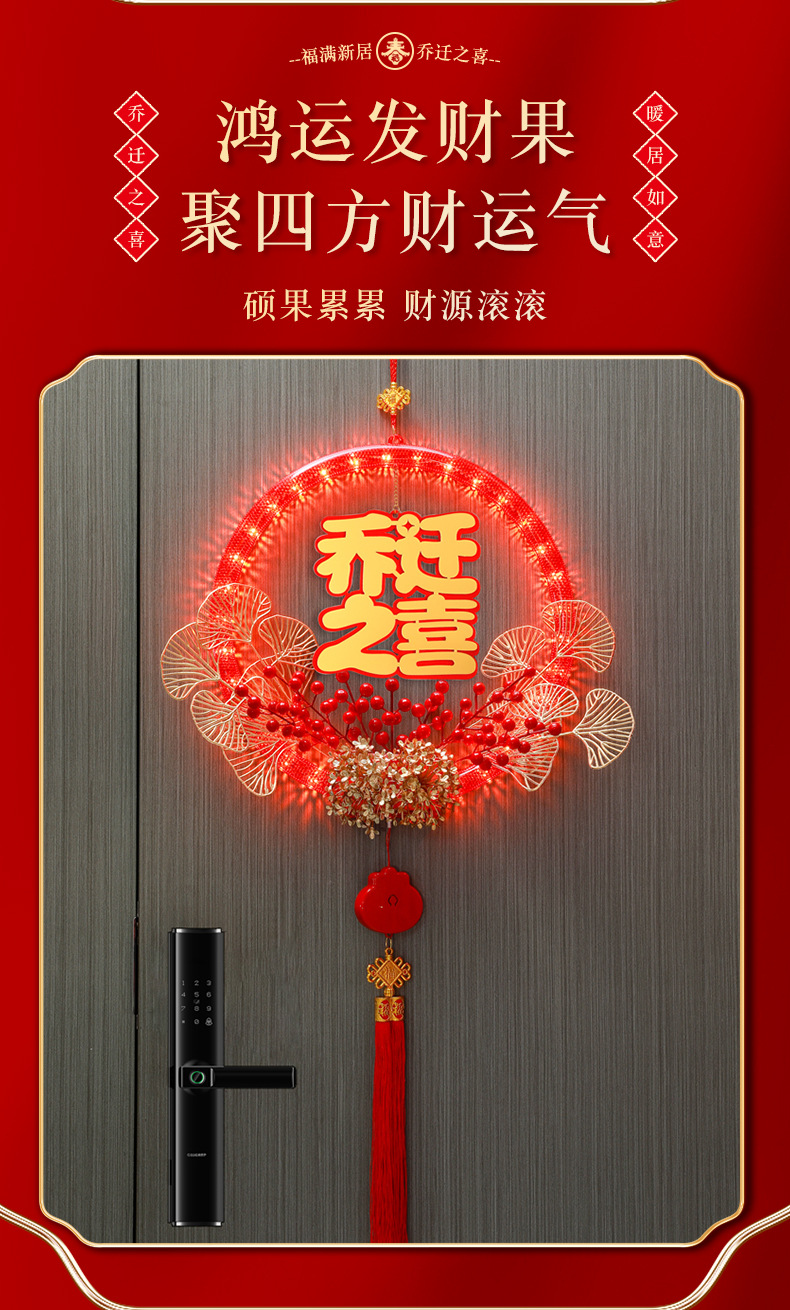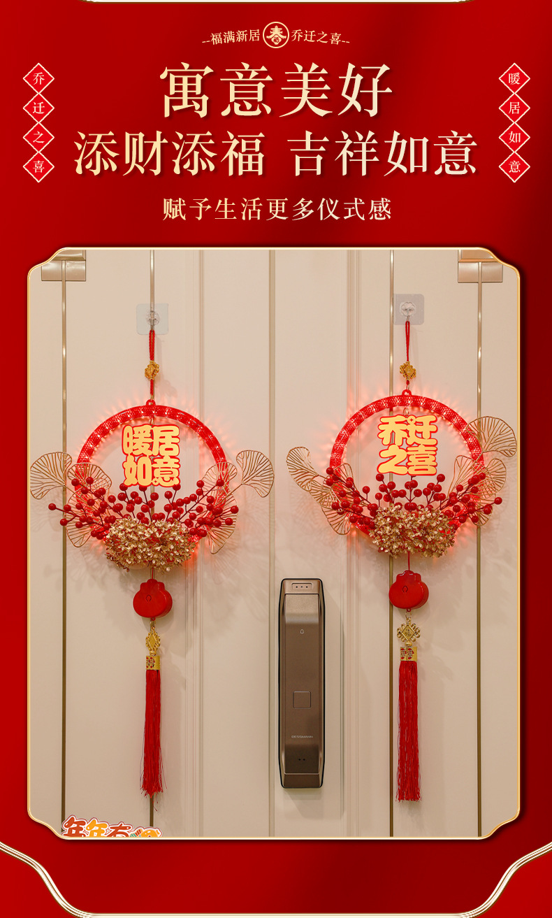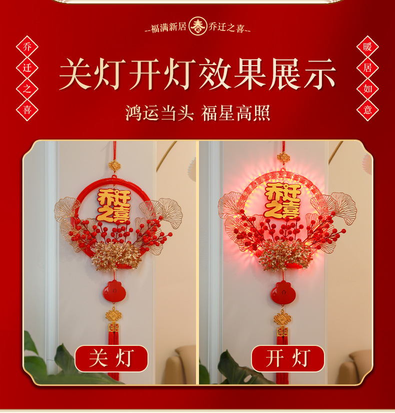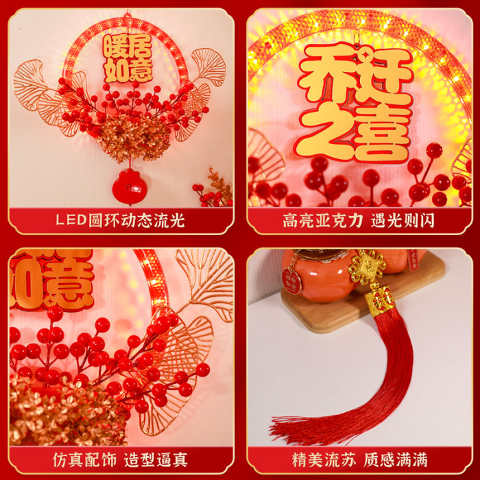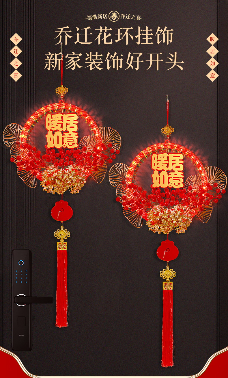 發光喬遷之喜花環新房搬家入宅儀式新居室內門掛飾裝飾布置用品