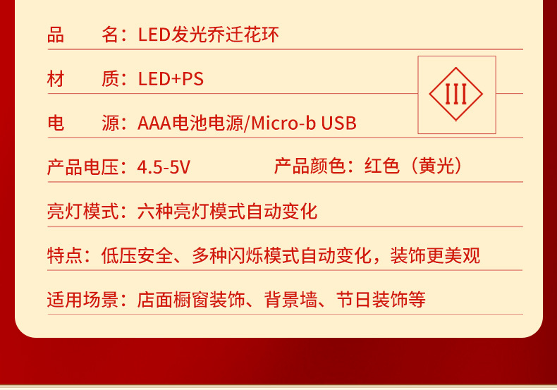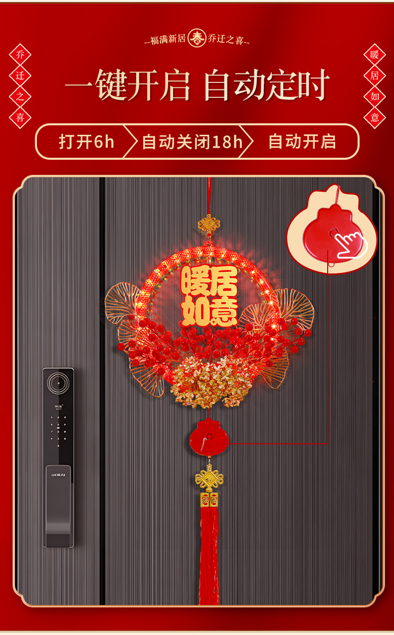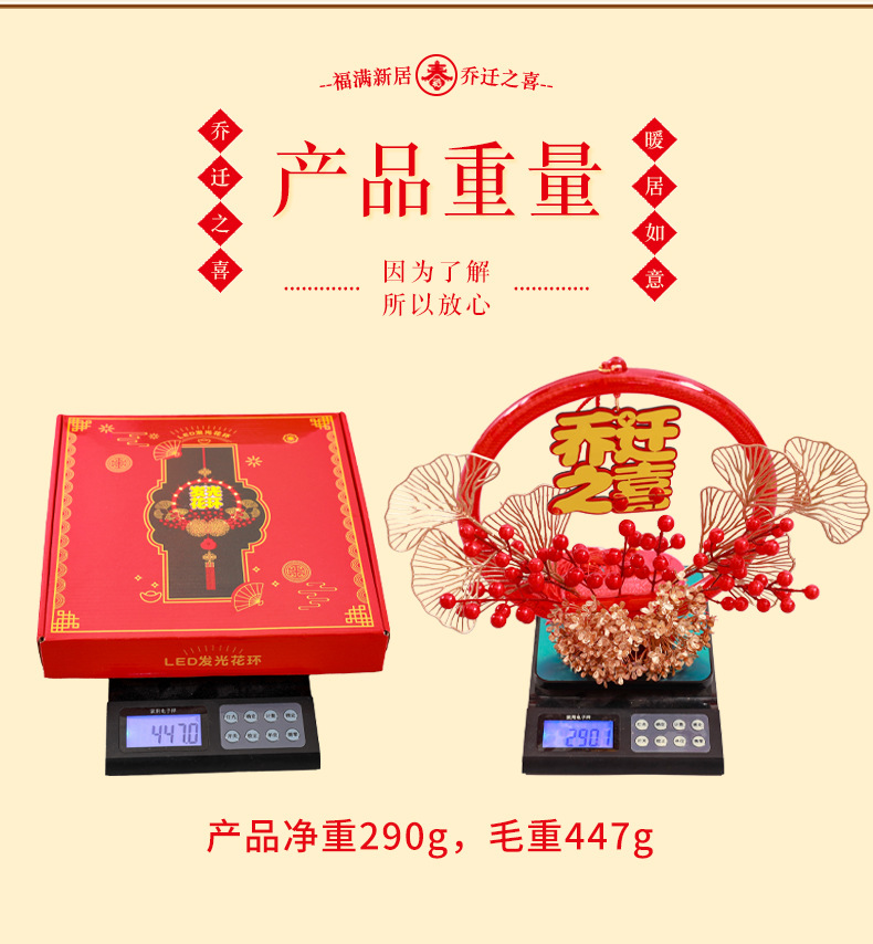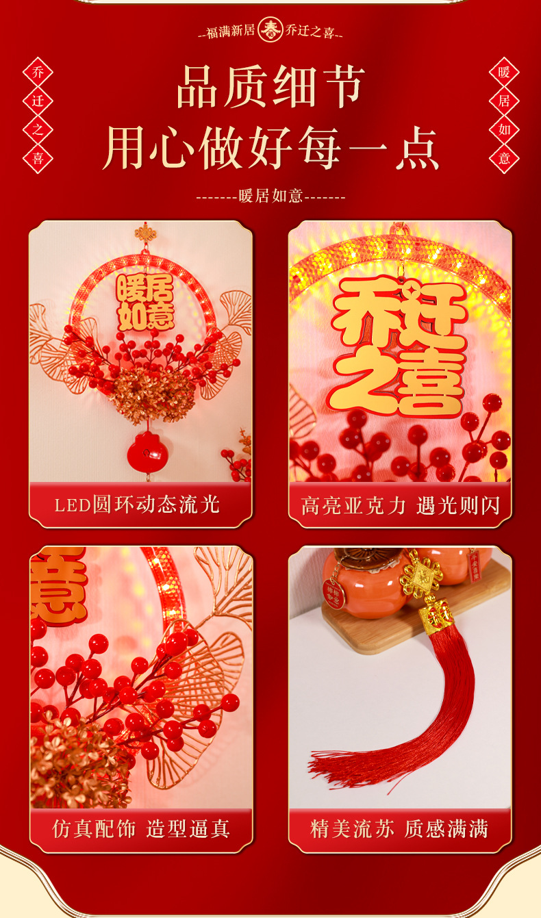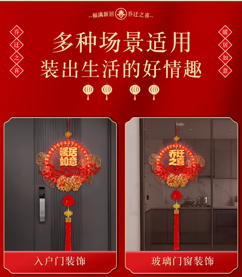 發光喬遷之喜花環新房搬家入宅儀式新居室內門掛飾裝飾布置用品