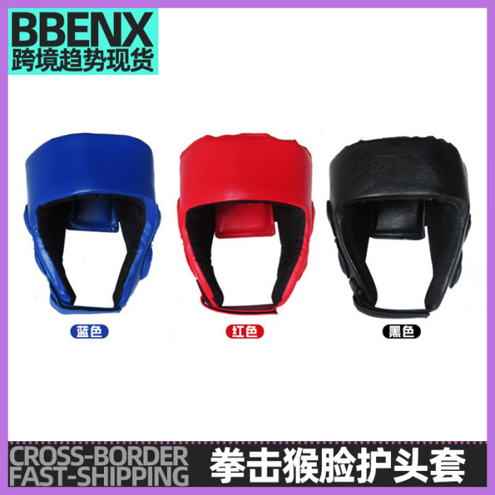 護臉拳擊散打頭盔猴臉搏擊跆拳道護頭加厚泰拳成人訓練頭套護下巴