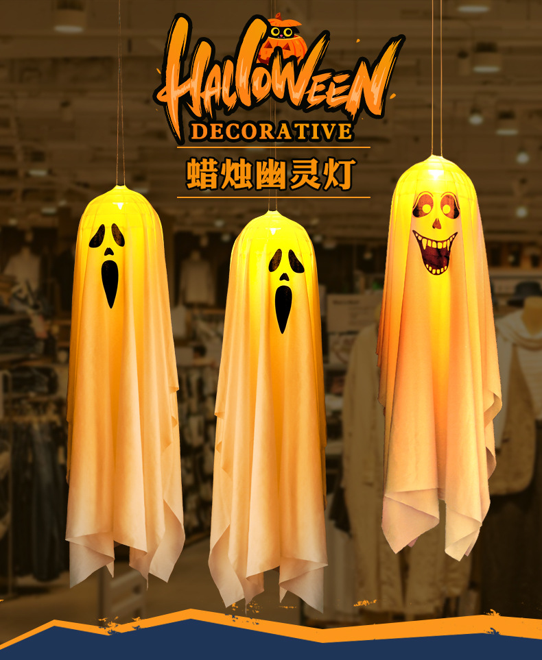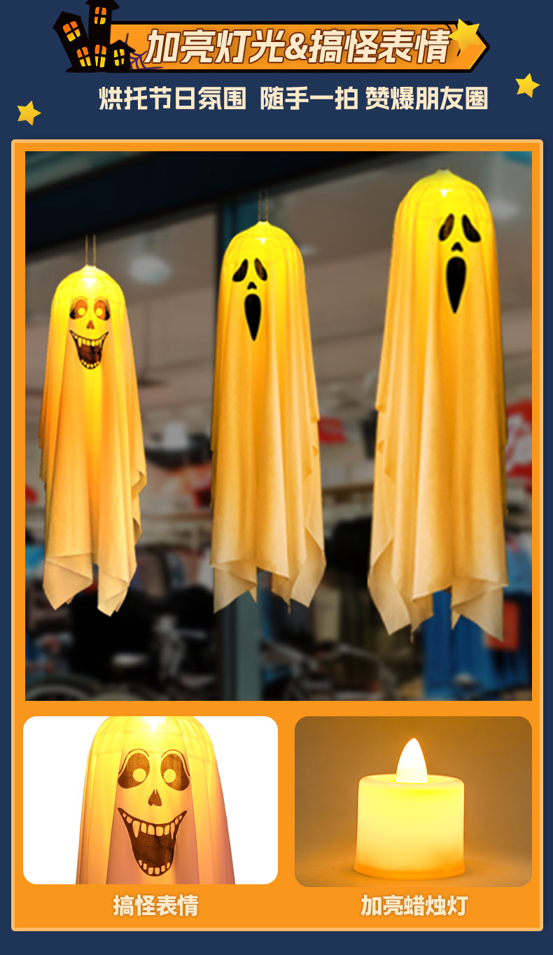 萬聖節發光蠟燭幽靈掛飾led彩燈鬼節恐怖氛圍庭院布置裝飾道具