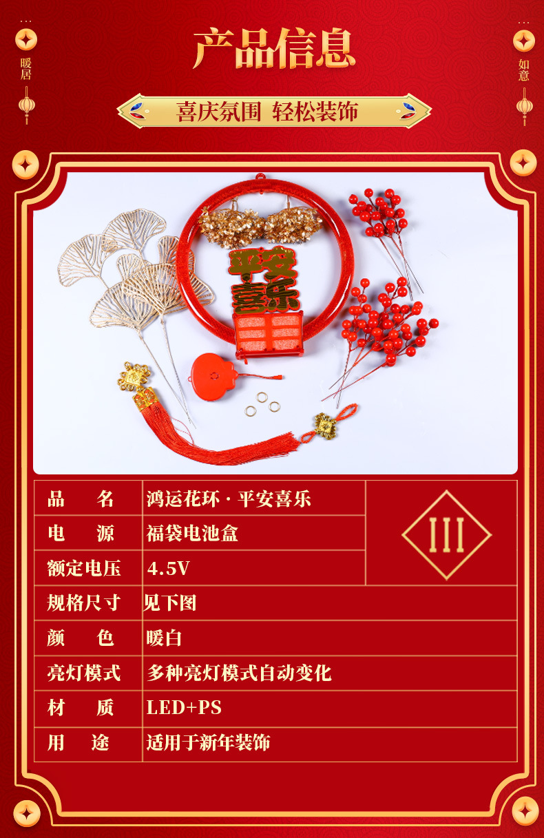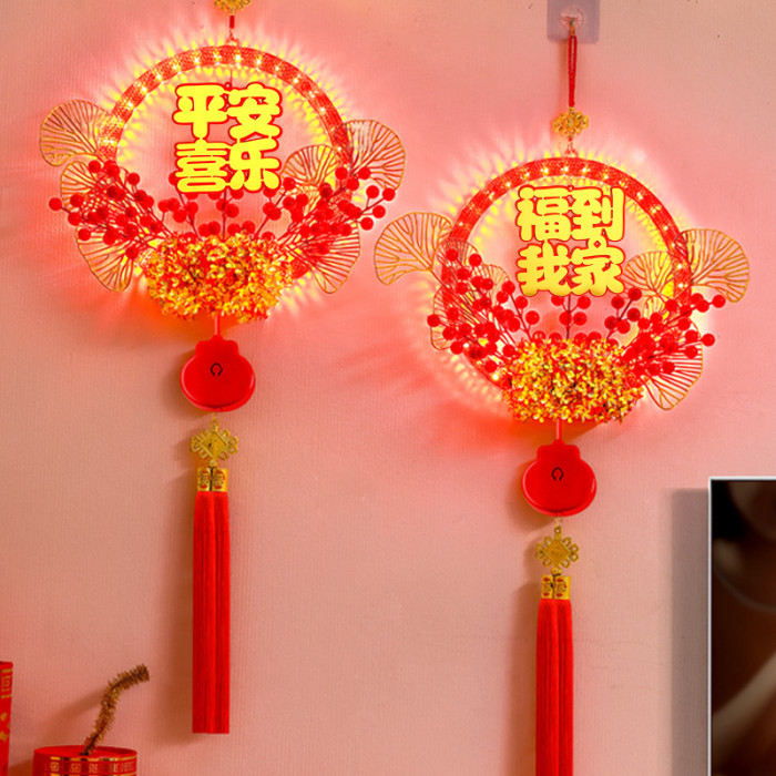 發光平安喜樂結花環掛件春節日福字氛圍房間牆壁裝飾布置掛飾
