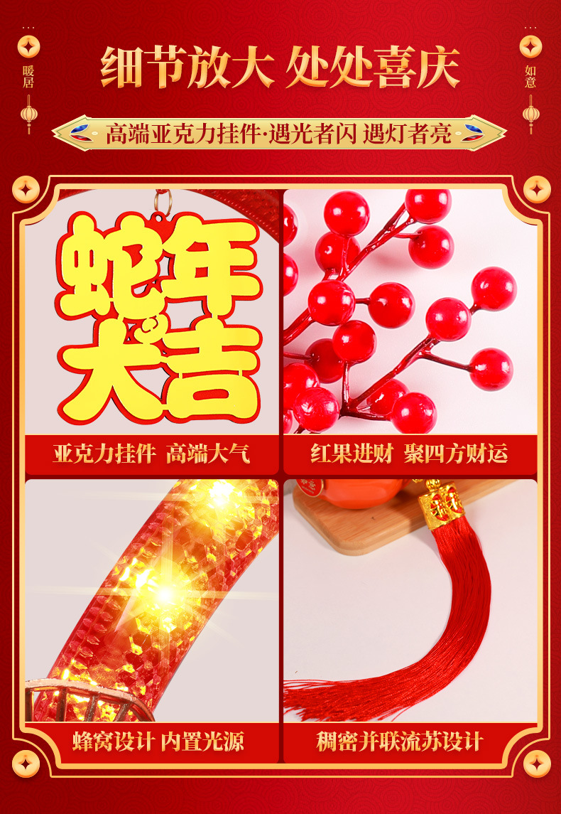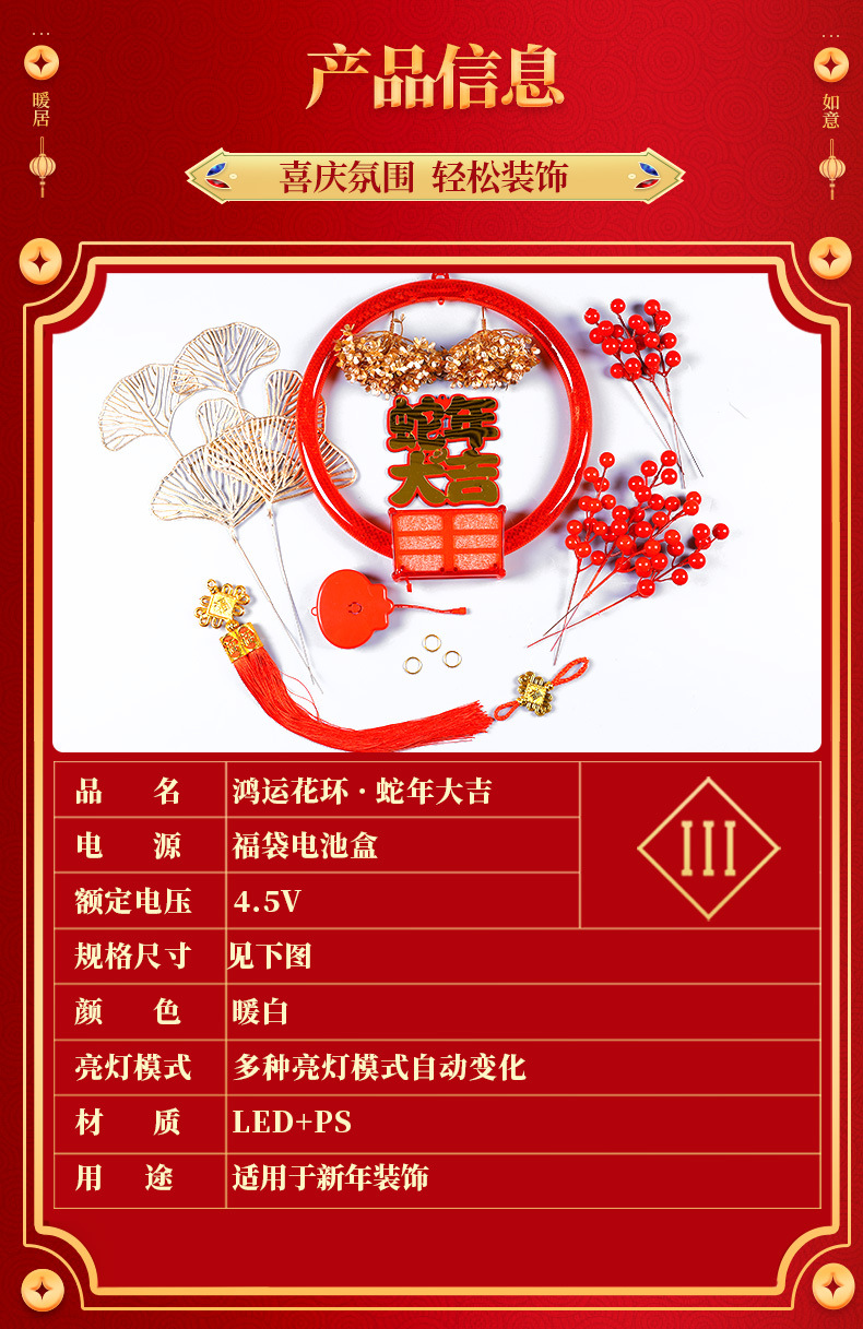 春節發光蛇年大吉花環掛件2025新年貨氛圍門店背景裝飾布置掛飾