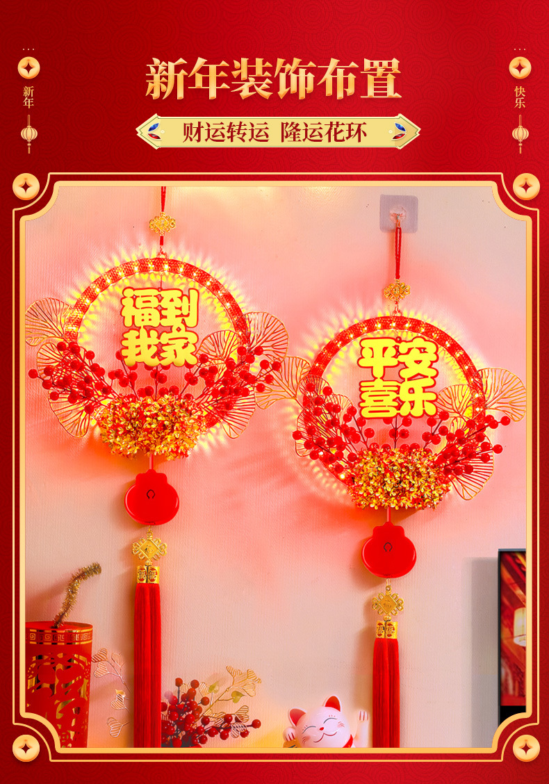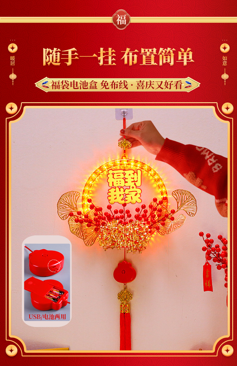 發光福到我家結花環掛件春節日福字氛圍房間牆壁裝飾布置掛飾