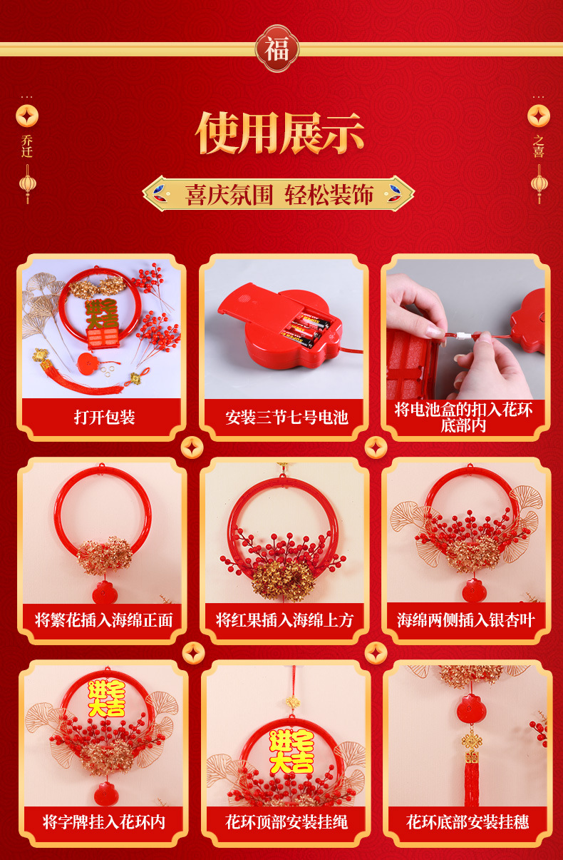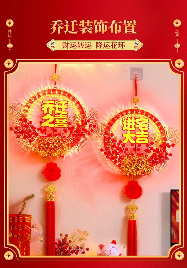 發光進宅大吉花環掛件喬遷之喜搬進新房大門貼裝飾布置用品掛飾