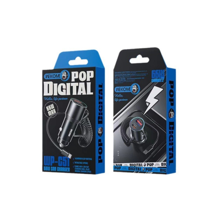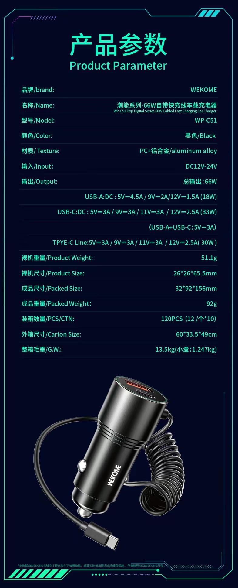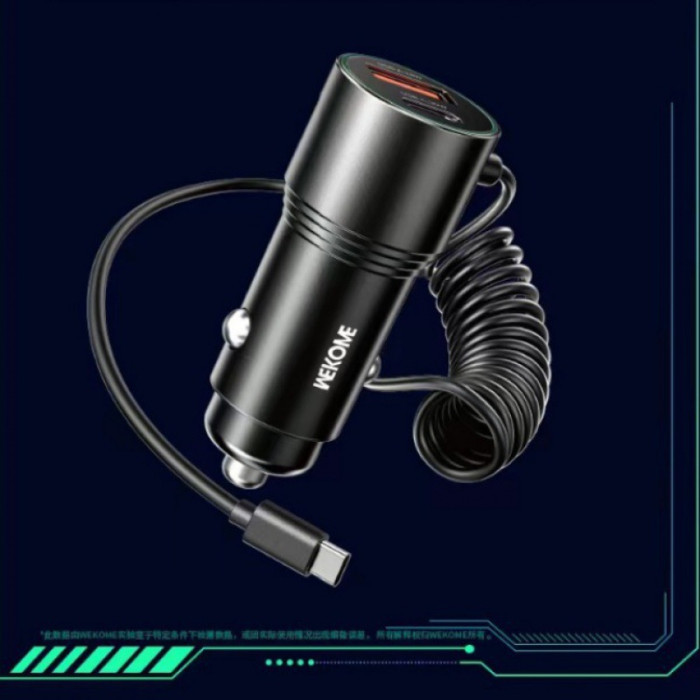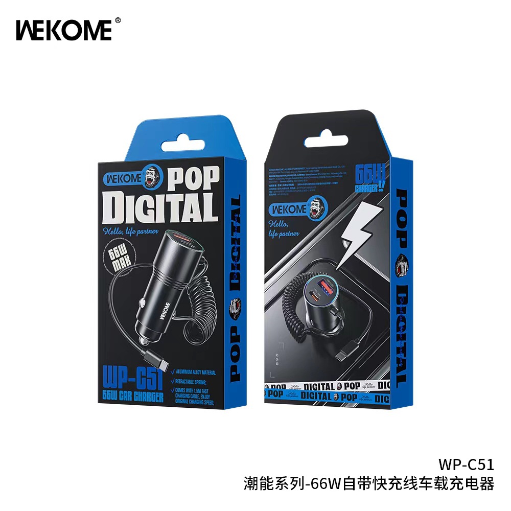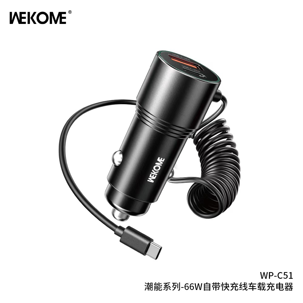 WEKOME車用充電器Type-C自帶彈簧線超級快充66W通用USB點菸器車充