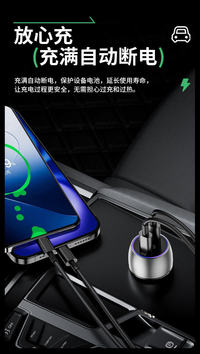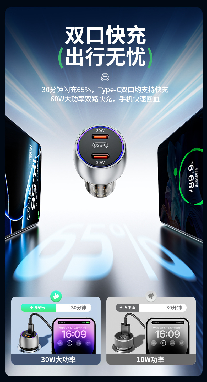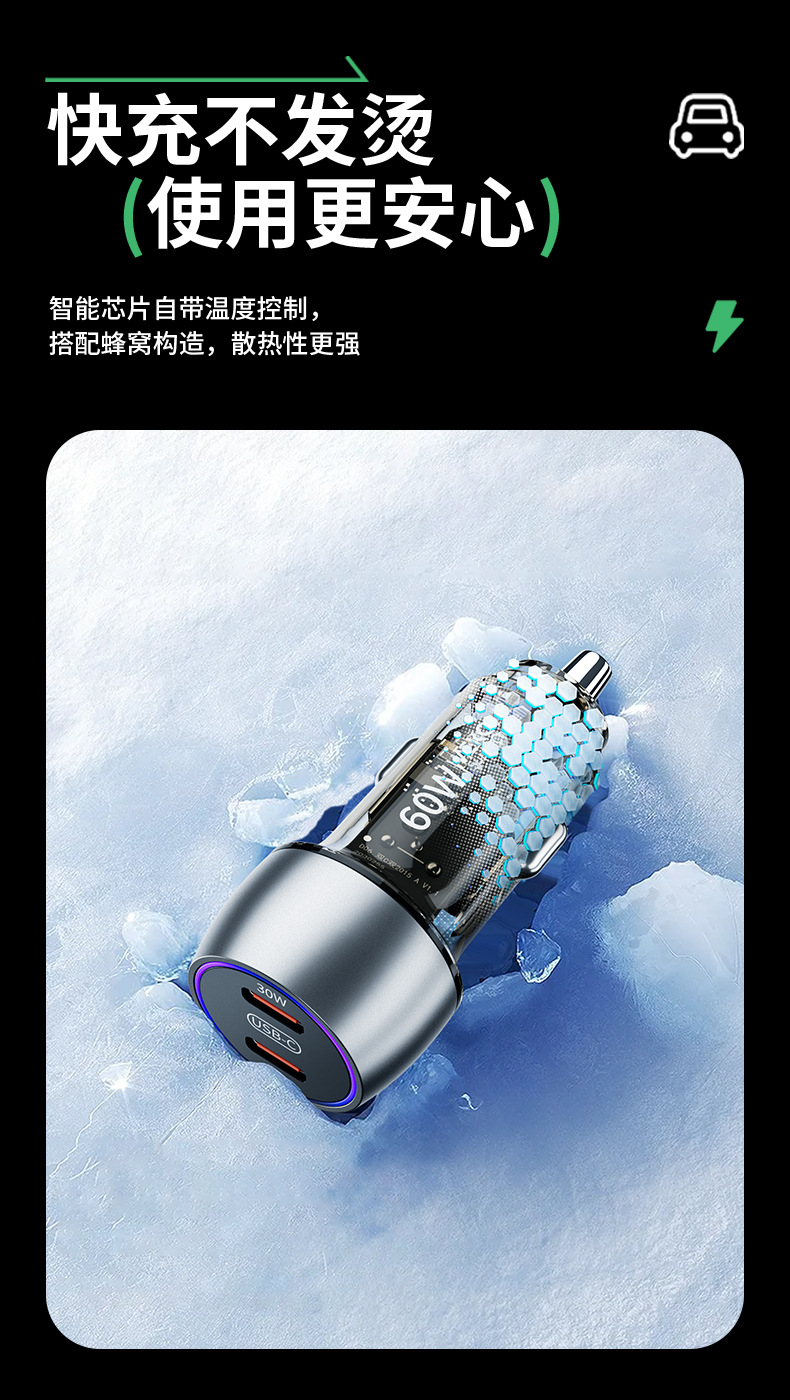 WEKOME透明60W輸出type-c智能快充車用手機充電C54汽車充電器車充