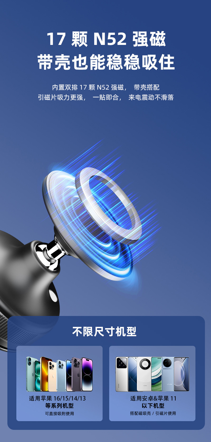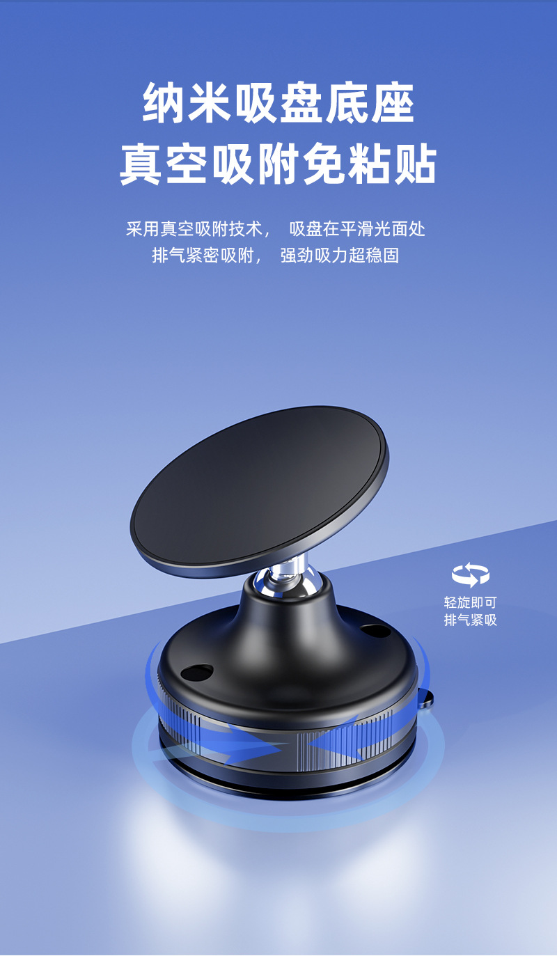 新款360°旋轉真空吸盤磁吸手機支架桌面浴室玻璃車用導航防抖震