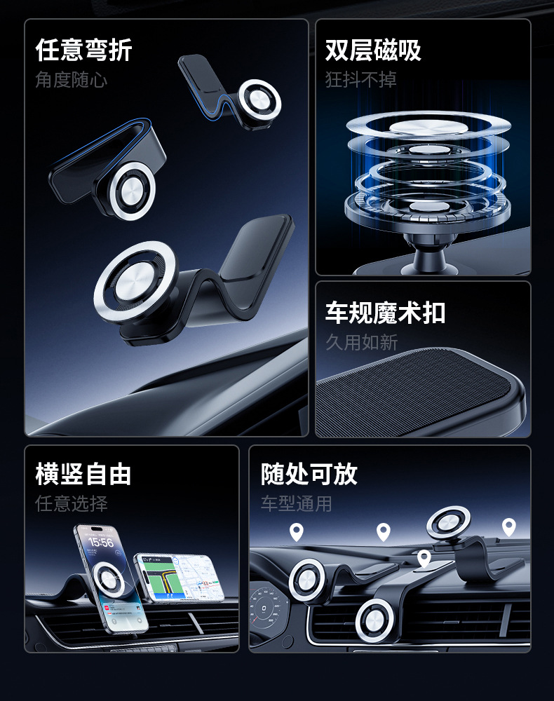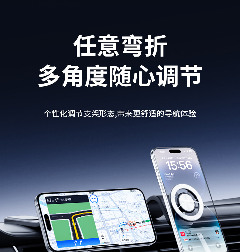 車用支架磁吸手機汽車導航支撐架MagSafe 車型通用可任意折曡彎曲